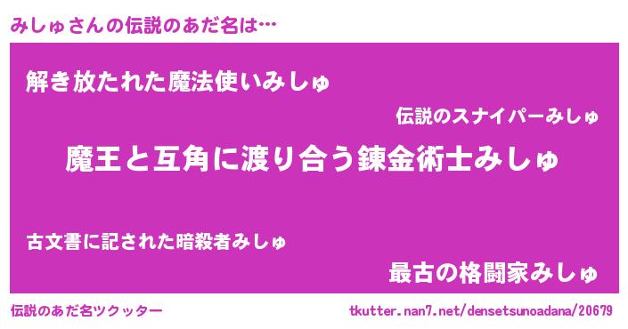 | 意味不明あだ名 | 『住所不定無職みしゅ(95歳)』『自称みしゅ』 |