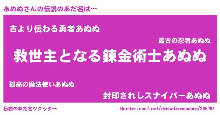 | ヒーロー風カッコイイあだ名 | 『慈愛の使者あぬぬ』『仮面アヌダー』 |