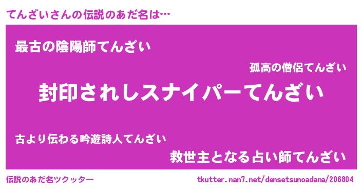 | 胡散臭い通販商品みたいなあだ名 | 『億万長者になれる霊験あらたかなお札…その名も「てんざい」』 |