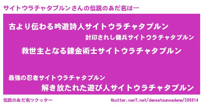 | 男性向けラノベタイトル風あだ名 | 『ノーゲーム・ノーサイトウラチャタプルン』 |