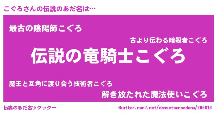 意味不明あだ名 | 『ペロリンこぐろ』『自称こぐろ』 |