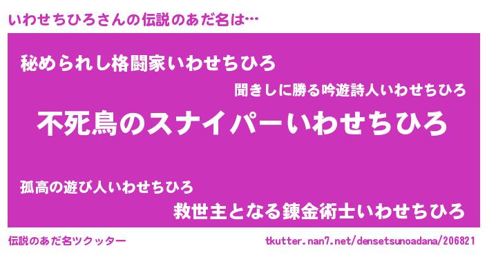 意味不明あだ名 | 『住所不定無職いわせちひろ(74歳)』 |