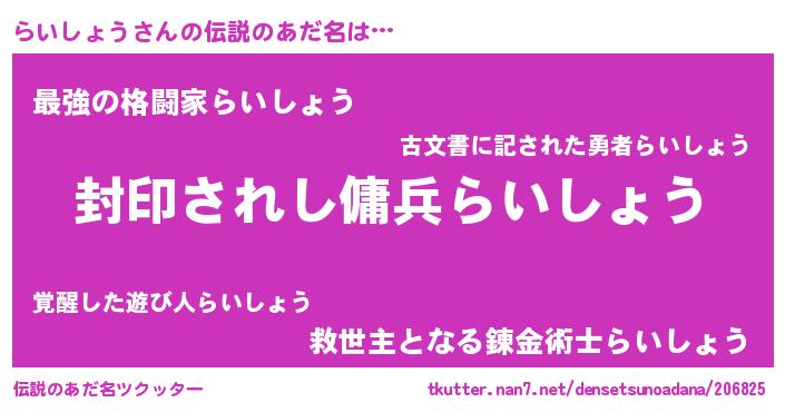 女子向けラノベタイトル風あだ名 | 『らいしょうストレイドッグス』 |