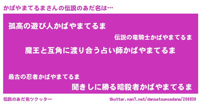ヒーロー風カッコイイあだ名 | 『慈愛の使者かばやまてるま』 |