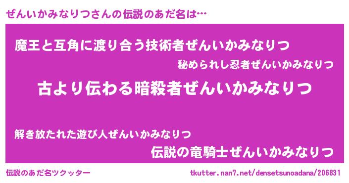 意味不明あだ名 | 『住所不定無職ぜんいかみなりつ(14歳)』 |