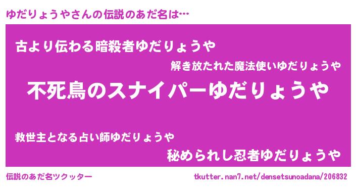 女子向けラノベタイトル風あだ名 | 『ゆだりょうや姫と円卓の騎士』 |