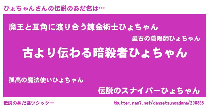 | 意味不明あだ名 | 『永久保存ひょちゃん』『自称ひょちゃん』 |
