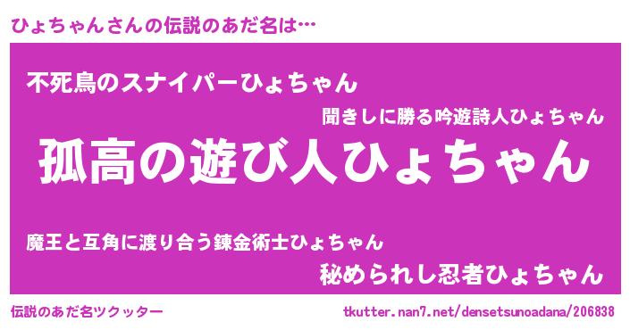 | ヒーロー風カッコイイあだ名 | 『仮面ヒョダー』『暗黒騎士ヒョ』 |