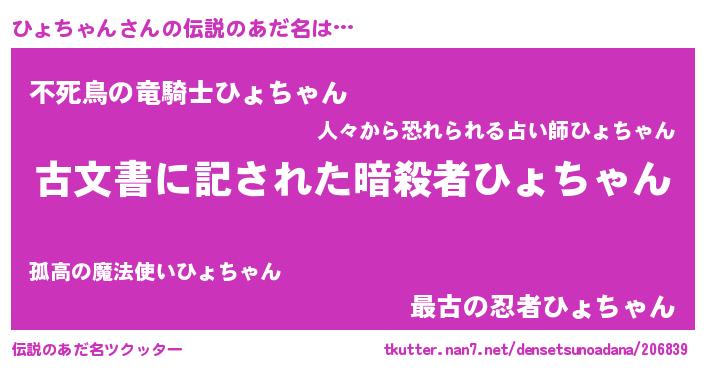 | 意味不明あだ名 | 『ニラ科ひょちゃん属』『自称ひょちゃん』 |