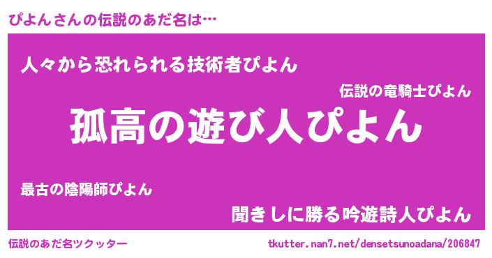 | 意味不明あだ名 | 『とにかく怪しいぴよん』『自称ぴよん』 |