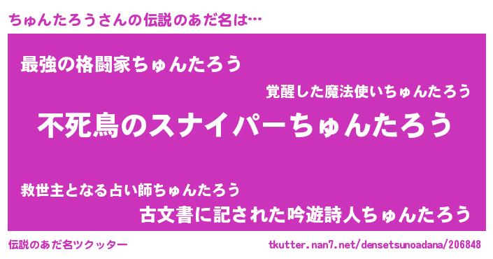 胡散臭い通販商品みたいなあだ名 | 『モテモテ間違いなし霊験あらたかなお札…その名も「ちゅんたろう」』 |