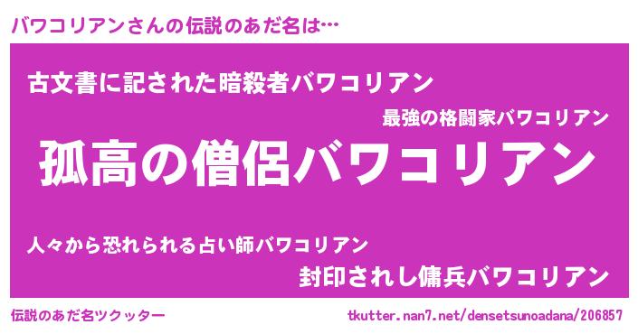 意味不明あだ名 | 『とにかく怪しいバワコリアン』 |
