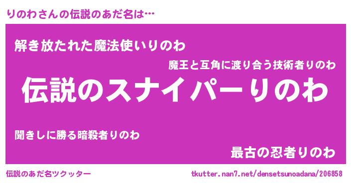 ヒーロー風カッコイイあだ名 | 『超時空戦士リノワ』『スーパーリノワ』 |