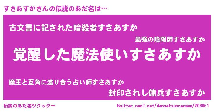 ヘコむあだ名 | 『すさを』『すさあすか(小並感)』 |