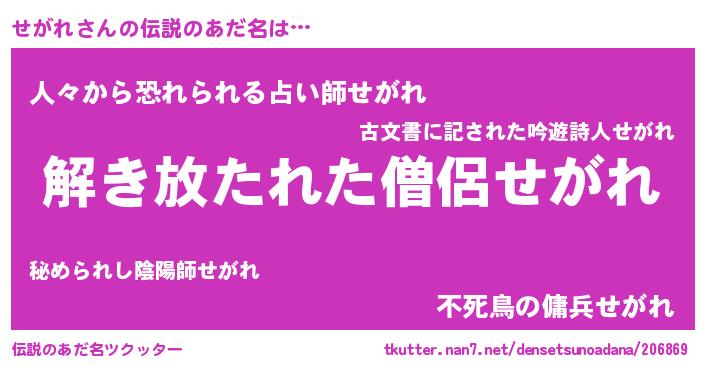 ヘコむあだ名 | 『せがっ子』『せがにゅー』『豆乳』 |