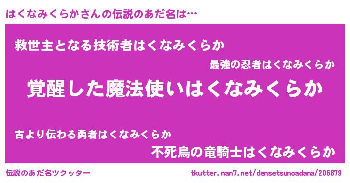 ポケモン風あだ名 | 『ヒハクナミクラカ』『ハークイ』 |