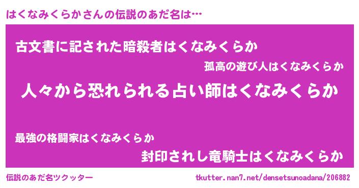ヘコむあだ名 | 『はくなみくらか(笑)』『はくもー』 |