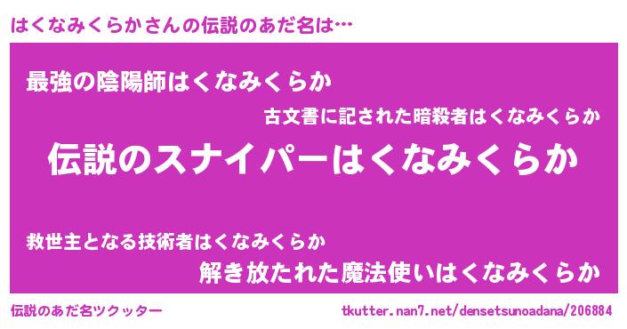 ヒーロー風カッコイイあだ名 | 『スーパーハクナミクラカ』 |