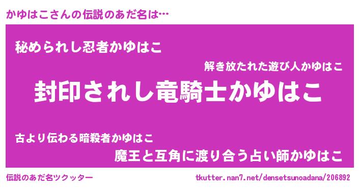 ヒーロー風カッコイイあだ名 | 『スーパーカユハコ』『仮面カユダー』 |