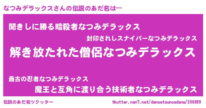 | ヒーロー風カッコイイあだ名 | 『魔戒騎士ナツ』『ネオナツミデラックス』 |