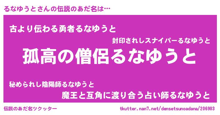 | ヘコむあだ名 | 『るなっぺ』『るなゆうと(小並感)』 |