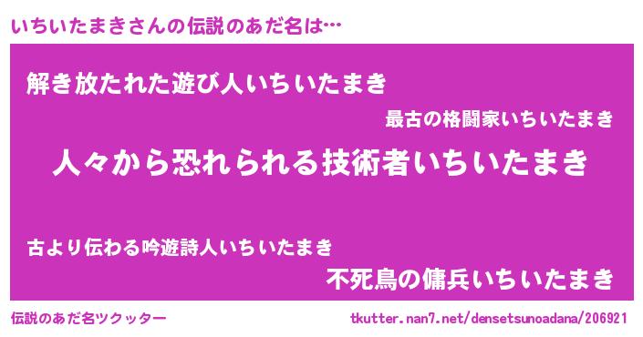 | 意味不明あだ名 | 『自称いちいたまき』 |