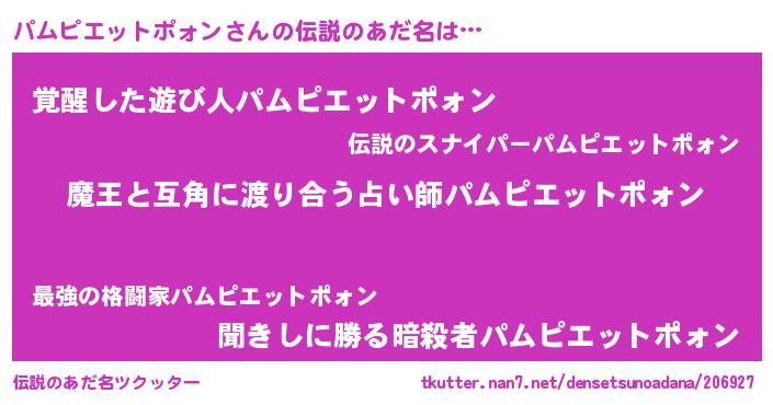 女子向けラノベタイトル風あだ名 | 『パムピエットポォン恋絵巻』 |