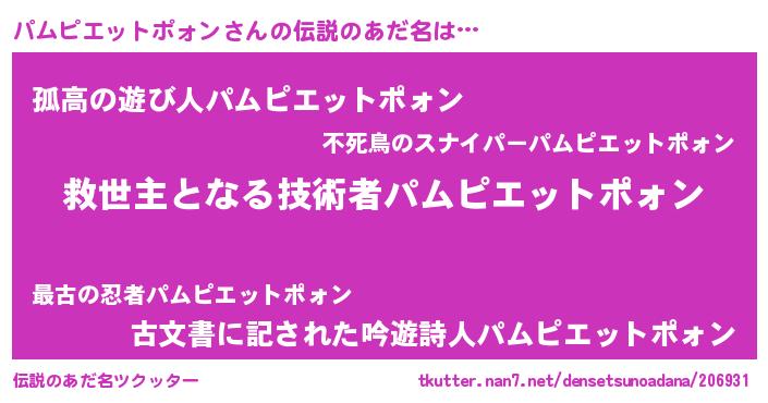 | ヘコむあだ名 | 『パムを』『パムピエットポォン(小並感)』 |