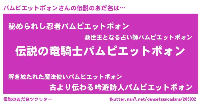 | 男性向けラノベタイトル風あだ名 | 『パムピエットポォンの憂鬱』 |