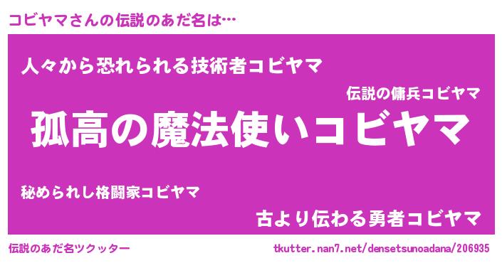 胡散臭い通販商品みたいなあだ名 | 『信頼と実績のサプリメント…その名も「コビヤマ」』 |