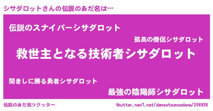 ヒーロー風カッコイイあだ名 | 『究極戦士シサダロット』『仮面シサダー』 |