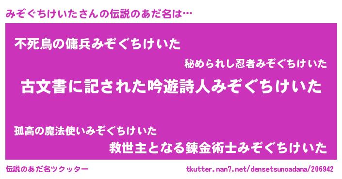 ヒーロー風カッコイイあだ名 | 『ネオミゾグチケイタ』『仮面ミゾダー』 |