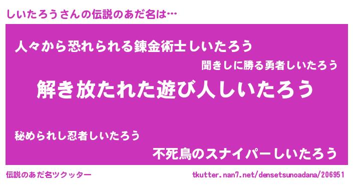 肩書あだ名 | 『しいたろう上級大将』『しいたろう団長』 |