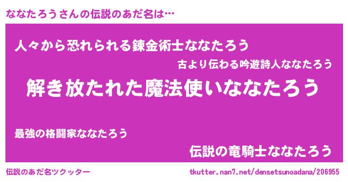 男性向けラノベタイトル風あだ名 | 『はたらくななたろうさま!』 |