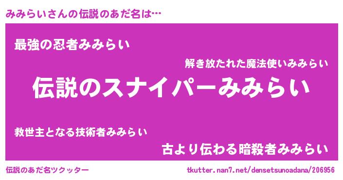意味不明あだ名 | 『ペロリンみみらい』『自称みみらい』 |