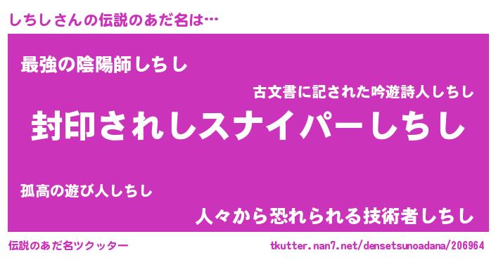 | ファンタジー風あだ名 | 『シチフェル』『エターナルシチシー』 |