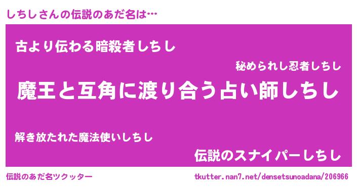 | 女子向けラノベタイトル風あだ名 | 『しちし恋絵巻』『闇のしちし』 |