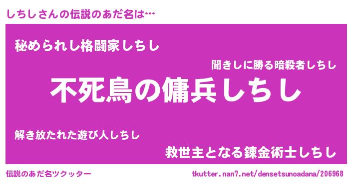 | 胡散臭い通販商品みたいなあだ名 | 『モテモテ間違いなし水晶球…その名も「しちし」』 |