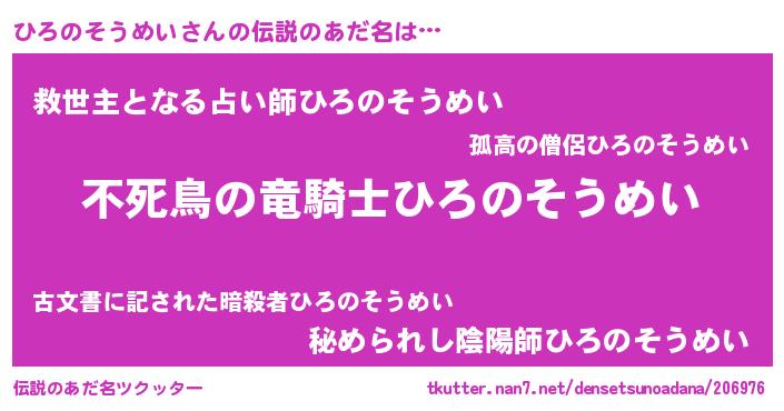 | 男性向けラノベタイトル風あだ名 | 『ひろのそうめいの憂鬱』 |