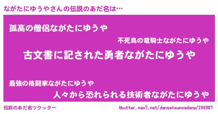 女子向けラノベタイトル風あだ名 | 『悪役ながたにゆうやに転生したようですが、知った事ではありません』 |