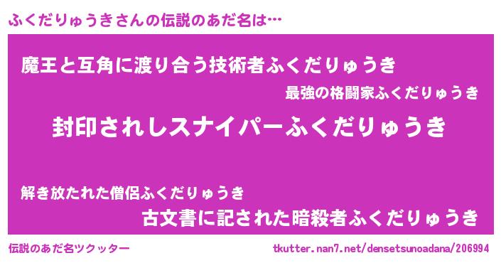 | 意味不明あだ名 | 『自称ふくだりゅうき』 |