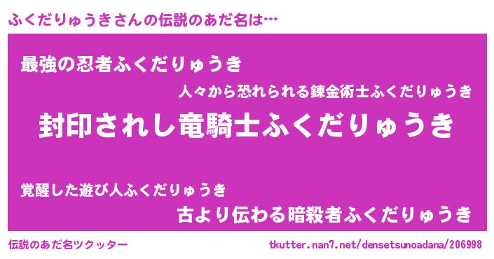 | 男性向けラノベタイトル風あだ名 | 『Re:ふくだりゅうきから始める異世界生活』 |
