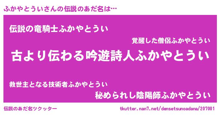 | 意味不明あだ名 | 『永久保存ふかやとうい』 |