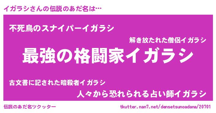 | 意味不明あだ名 | 『住所不定無職イガラシ(3歳)』 |