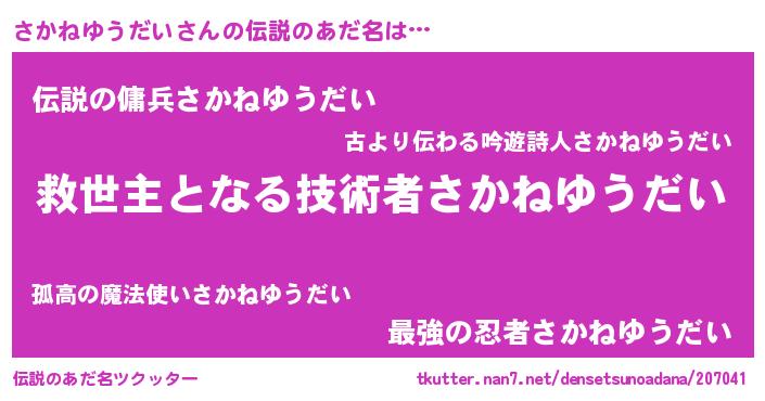 ヒーロー風カッコイイあだ名 | 『慈愛の使者さかねゆうだい』 |