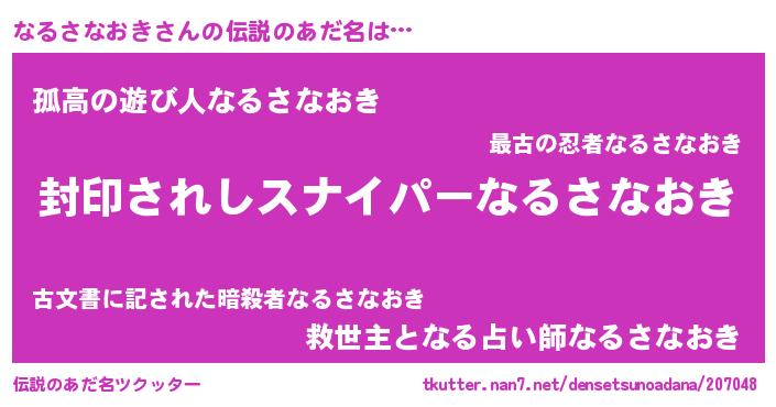 ポケモン風あだ名 | 『ナルチュウ』『ヒナルサナオキ』 |