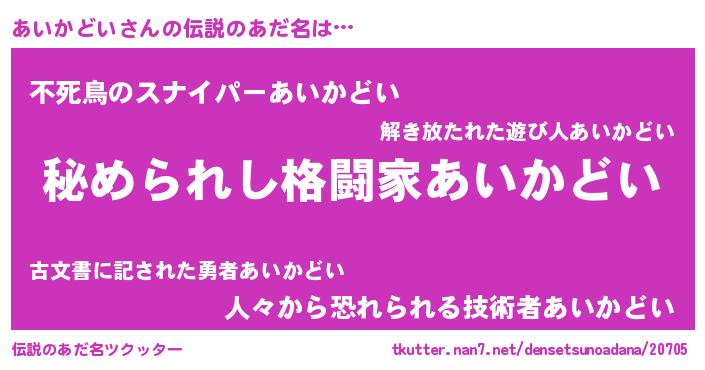 | ヒーロー風カッコイイあだ名 | 『ウルトラあいかどいマン』 |