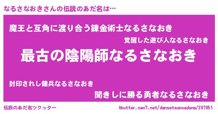 ヘコむあだ名 | 『豆乳』『なるさなおき(遠い目)』 |