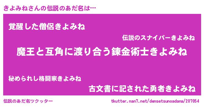 ヒーロー風カッコイイあだ名 | 『愛の使者きよみね』『炎刃騎士キヨ』 |