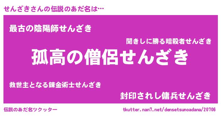 | ヒーロー風カッコイイあだ名 | 『黄金騎士セン』『ウルトラせんざきマン』 |